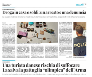 VODO DI CADORE Provvidenziale intervento dei carabinieri a Peaio, nel territorio della Compagnia di Cortina d’Ampezzo, dove una turista danese è stata salvata da un probabile soffocamento. I due militari, giunti in rinforzo dalla provincia di Salerno per garantire la sicurezza durante le Olimpiadi Invernali Milano-Cortina 2026, sabato 14 febbraio stavano rientrando in caserma quando sono stati richiamati dalle grida di un uomo con in braccio un bambino. L’uomo chiedeva aiuto: la moglie si era sentita male nel B&B poco distante. I carabinieri hanno raggiunto la struttura trovando la donna priva di sensi a terra. In costante contatto con il 118, hanno praticato con sangue freddo le manovre di primo soccorso, decisive per evitare il peggio, fino all’arrivo dell’ambulanza che l’ha trasportata all’ospedale di Pieve di Cadore. Nelle stesse ore, l’Arma ha denunciato un automobilista ubriaco nei pressi della pista da bob e identificato un uomo della provincia di Enna per il furto della divisa ufficiale dei volontari della Fondazione Milano Cortina 2026, poi restituita al legittimo proprietario.