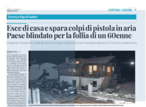 VIGO DI CADORE Un 60enne di Vigo, alterato probabilmente dall’alcol, ha sparato diversi colpi di pistola in aria dal giardino di casa, facendo scattare l’allarme.