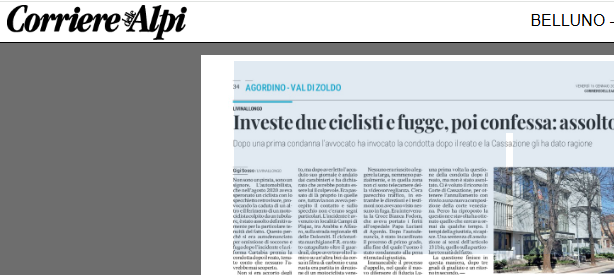 LIVINALLONGO Si chiude la vicenda dell’automobilista che nell’agosto 2020, sulla regionale 48 tra Arabba e Alfauro, aveva urtato un ciclista con lo specchietto, provocando una caduta a catena e il ferimento di un motociclista. L’uomo non si era accorto di nulla, ma dopo aver sentito della notizia dai mezzi di informazione locale, si era autodenunciato ai carabinieri per omissione di soccorso, ammettendo che poteva essere lui il responsabile: nessuno lo avrebbe mai scoperto, né testimoni né telecamere avevano individuato il mezzo. Dopo condanna in primo grado e battaglia legale fino in Cassazione, la corte ha disposto l’assoluzione definitiva per particolare tenuità del fatto, alla luce della sua condotta: un caso che si chiude dopo tre gradi di giudizio e un ritorno in appello.