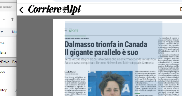 Grande protagonista della tappa di Coppa del Mondo di snowboard a Val Saint‑Come è stata l’azzurra Lucia Dalmasso, che ha confermato l’ottimo momento di forma nello slalom gigante parallelo. In una delle gare disputate, la snowboarder veneta ha ottenuto una prestigiosa vittoria tutta italiana battendo in finale la compagna di squadra Jasmin Coratti. Si tratta del terzo successo stagionale e del quinto in carriera nel circuito della FIS Snowboard World Cup, risultato che le permette di salire al secondo posto sia nella classifica di specialità sia in quella generale. Nella stessa tappa nordamericana Dalmasso ha anche conquistato un altro podio, chiudendo al terzo posto con il tempo di 1:24.38 nella finale per il bronzo. Davanti a lei si sono piazzate la tedesca Ramona Theresia Hofmeister e la giapponese Tsubaki Miki. Il risultato conferma la continuità dell’atleta di Falcade tra le migliori specialiste della disciplina a livello internazionale