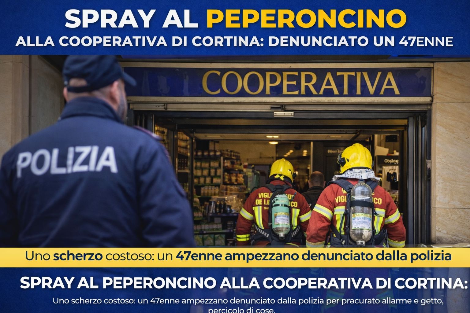 SPRAY AL PEPERONCINO ALLA COOPERATIVA DI CORTINA: DENUNCIATO UN 47ENNE