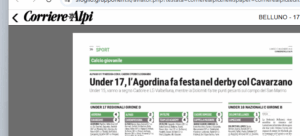 Tornano a vincere gli allievi di De Lazzer e lo fanno sul campo di casa. All’Ivano Dorigo di Agordo è andato in scena il derby bellunese e l’Agordina ha rifilato 4 gol al Cavarzano subendone due. Una bella prestazione dei biancocelesti che vanno a segno con Rudatis, Dell’Osbel e una doppietta di Campedel. 3 punti importanti contro la quarta forza del campionato.