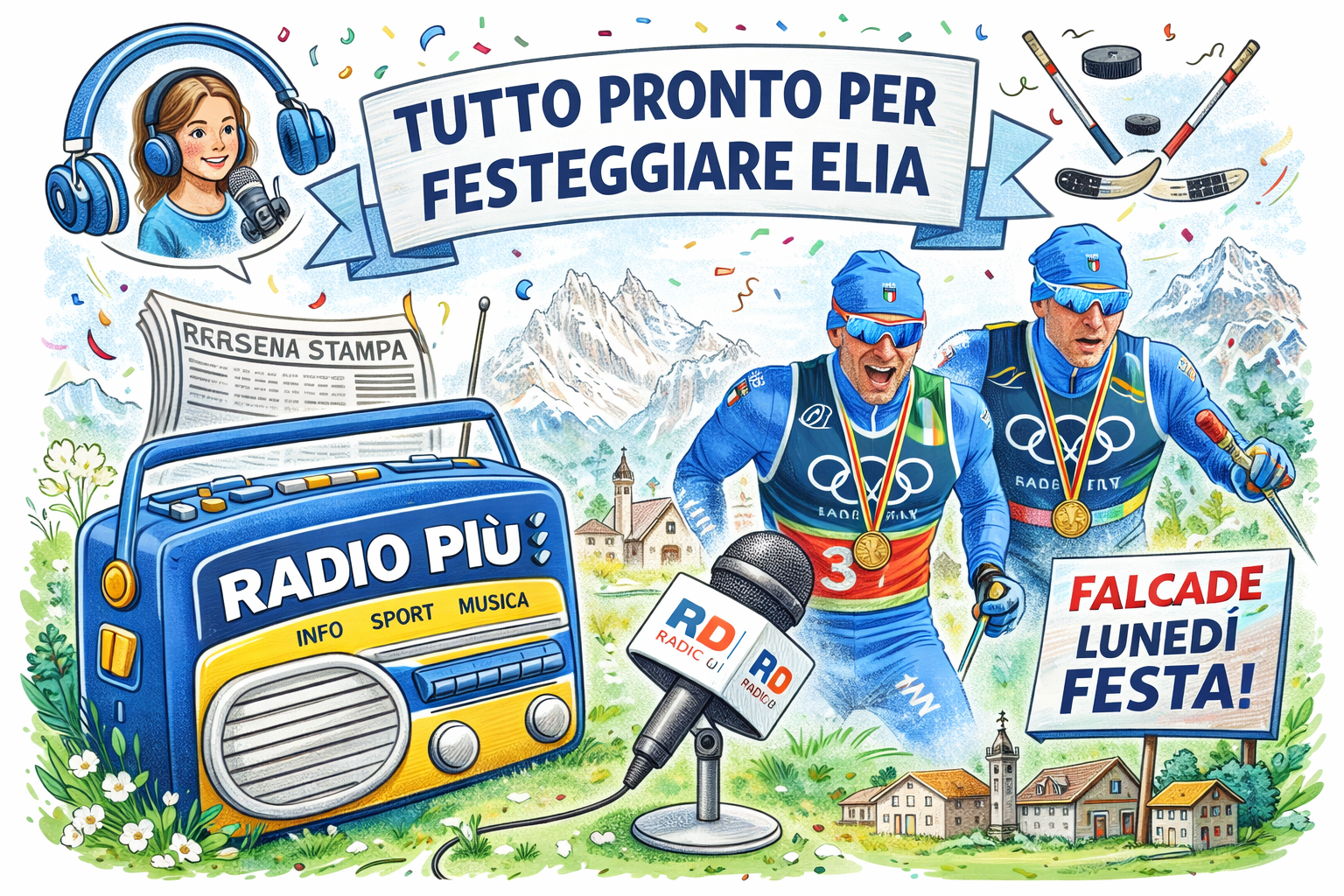 FALCADE/TAIBON Falcade si prepara a vivere una serata di grande emozione e orgoglio collettivo. Lunedi 23 febbraio il paese renderà omaggio ad Elia Barp, con un evento speciale pensato per coinvolgere tutta la comunità: L’Abbraccio Azzurro. L’iniziativa, promossa dal Comune di Falcade in collaborazione con Radio Più, Sci Club Val Biois e Proloco di Caviola nasce dal desiderio di celebrare non solo un risultato sportivo di altissimo livello, ma anche il percorso umano e sportivo di un’atleta che, con impegno, sacrificio e determinazione, ha saputo portare il nome di Falcade sul palcoscenico olimpico. La serata prenderà il via alle 19 con un primo momento di omaggio itinerante tra le vie del paese, un simbolico abbraccio che unirà cittadini, associazioni e amici in un clima di festa e partecipazione. Alle 19.30 l’appuntamento si sposterà al Palafalcade, dove proseguirà la celebrazione con una grande festa aperta a tutta la popolazione con Morgan e Battaglia DJ e gli animatori di Radio Più in diretta su tutti i canali.