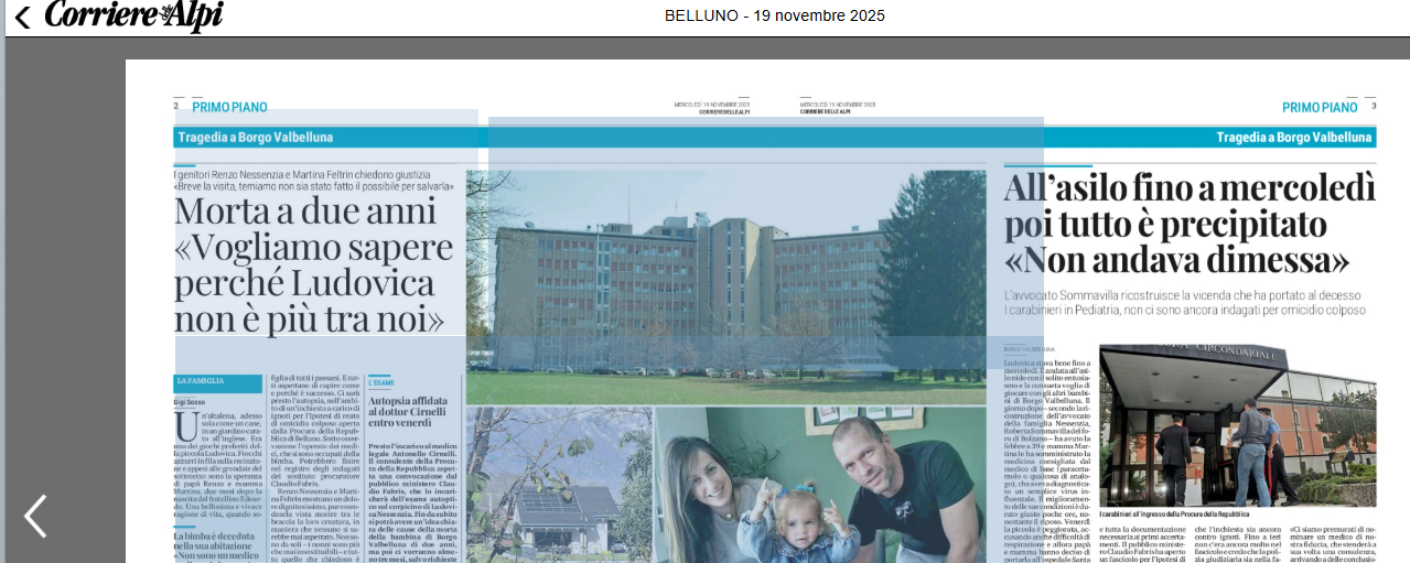 BORGO VALBELLUNA | BIMBA DI DUE ANNI MUORE DOPO LE DIMISSIONI DALL’OSPEDALE: DOPPIA INCHIESTA