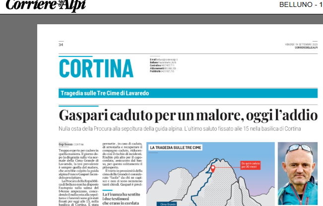 BELLUNO Con profonda commozione l’Ulss Dolomiti esprime cordoglio per la tragica scomparsa di Franco Gaspari, guida alpina e stimato tecnico di elisoccorso. La sua dedizione, il coraggio e la professionalità hanno rappresentato un esempio luminoso al servizio della comunità. Apprezzato per precisione, umanità e spirito di squadra, ha conquistato stima e affetto dei colleghi. Oltre al ruolo professionale, emergeva la sua grande sensibilità, generosità e attaccamento ai valori della solidarietà. La passione per la montagna, vissuta con responsabilità e amore, rifletteva un profondo senso di missione. In questo momento di dolore, l’Ulss Dolomiti si stringe con affetto alla famiglia, agli amici e ai colleghi, custodendo vivo il suo esempio.