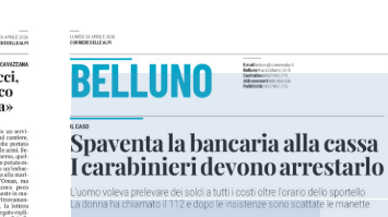 Un uomo bellunese si è presentato in banca per effettuare un prelievo, ma lo sportello era ormai chiuso. Di fronte al rifiuto della cassiera, che gli ha consigliato di usare il bancomat, ha iniziato a insistere in modo sempre più agitato, probabilmente anche a causa dell’alcol. Spaventata, la dipendente ha chiamato i carabinieri. All’arrivo della pattuglia, i militari hanno cercato di calmarlo e convincerlo ad allontanarsi, ma senza successo. L’uomo ha continuato a pretendere i soldi, fino a chiedere lui stesso di essere ammanettato. A quel punto i carabinieri lo hanno arrestato per oltraggio e resistenza a pubblico ufficiale e portato nel carcere di Baldenich. Nei prossimi mesi dovrà affrontare un processo.
