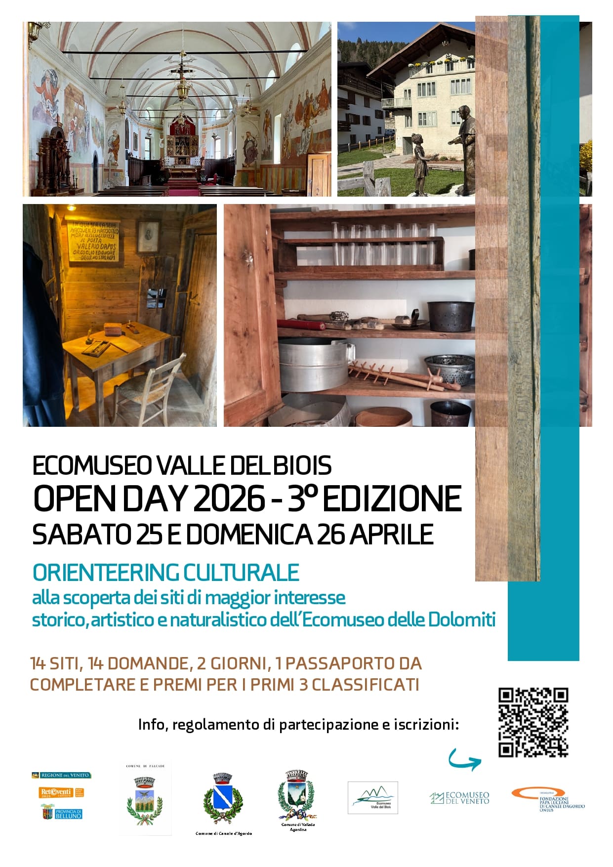CANALE D’AGORDO Torna il 25 e 26 aprile l’open day dell’Ecomuseo della Valle del Biois, giunto alla terza edizione. L’evento propone un itinerario di orienteering culturale tra 14 siti nei comuni di Canale d’Agordo, Falcade e Vallada Agordina, con visite guidate e attività interattive. I partecipanti riceveranno un “passaporto” da completare con bollini e un quiz, con premiazioni finali al Museo Albino Luciani. Sabato le attività si svolgeranno tra Canale d’Agordo e Falcade, mentre domenica sarà dedicata a Vallada Agordina, con consegna finale entro le 13 e premiazioni nel pomeriggio. Nato nel 2021 e riconosciuto dalla Regione Veneto, l’ecomuseo valorizza identità, tradizioni e paesaggio locale. L’iniziativa è gratuita e aperta a tutti, con iscrizioni entro il 24 aprile tramite mail a [email protected] o whatsapp al 377 9665237.