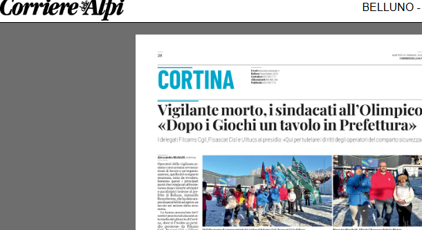 CORTINA Ieri mattina davanti allo Stadio del Ghiaccio di Cortina, si è svolto il presidio unitario promosso da Filcams Cgil, Fisascat Cisl e Uiltucs in memoria di Pietro Zantonini, il vigilante 55enne tragicamente scomparso l’8 gennaio durante un turno notturno in un cantiere olimpico. La manifestazione ha richiamato l’attenzione sulle criticità della vigilanza privata: turni eccessivi, straordinari fuori norma, riposi negati e dotazioni inadeguate. I sindacati hanno denunciato la pressione della logica del massimo ribasso negli appalti, che ricade sui lavoratori. Il prefetto di Belluno ha annunciato l’istituzione di un tavolo permanente di confronto per migliorare la sicurezza sul lavoro e prevenire future tragedie.