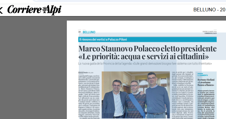NUOVO PRESIDENTE DELLA PROVINCIA DI BELLUNO: AUGURI E SOSTEGNO DAL TERRITORIO