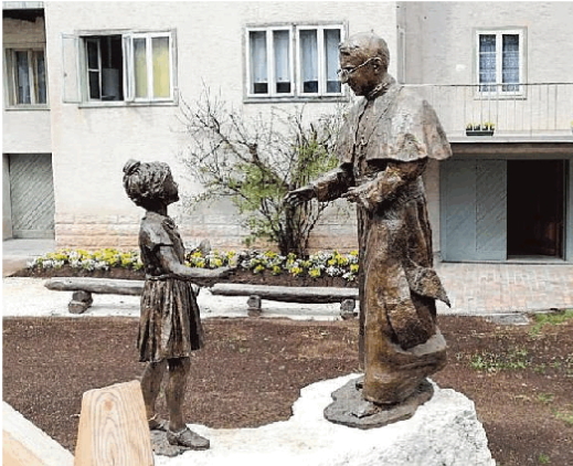 Ecco nel giardino di casa Luciani la statua: Candela Giarda che sembra corrergli incontro. È la ragazzina di Buenos Aires che all’età di 11 anni era affetta da “grave encefalopatia infiammatoria acuta, stato di male epilettico refrattario maligno, shock settico e ormai in fin di vita. Deve la sua vita proprio a lui, a Papa Luciani, così insistentemente pregato dai genitori.