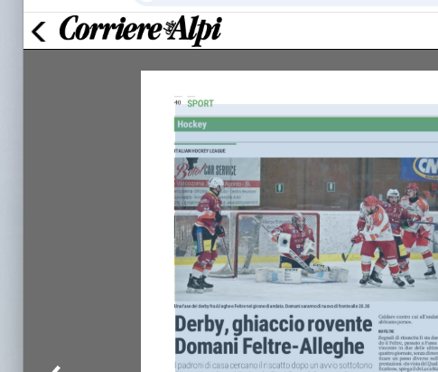 Dopo due sconfitte consecutive il Feltre torna a vincere e lo fa in trasferta contro il Fassa. Ad Alba Di Canazei i picchi giocano alla pari dei padroni di casa ma sono più concreti sotto porta. Ora due giorni di riposo prima di tornare in campo martedì sera per il derby contro l’Alleghe. Match equilibrato fin dalle prime battute. Le squadre lottano su ogni disco ma ad avere la meglio sono i trentini che al 10’ passano in vantaggio. La risposta del Feltre non si fa attendere e Cortese pareggia i conti subito dopo. I picchi approfittano del momento di difficolta del Fassa per passare in vantaggio con Marcazzan. Anche nel secondo tempo le squadre giocano a viso aperto. Nella terza frazione arriva la terza rete feltrina con Foltin ma il Fassa accorcia subito le distanze.