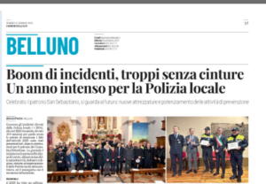 BELLUNO Dopo la festa regionale di martedì, giovedì la Polizia Locale di Belluno ha festeggiato San Sebastiano, il suo santo patrono. Il bilancio dell’anno appena trascorso è positivo, e la cerimonia ha visto protagonisti anche due agenti premiati per la loro attività.