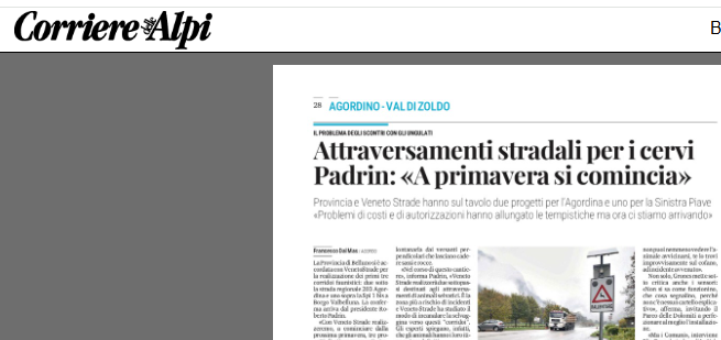 TRE CORRIDOI FAUNISTICI TRA AGORDINA E SINISTRA PIAVE: ACCORDO TRA PROVINCIA E VENETO STRADE