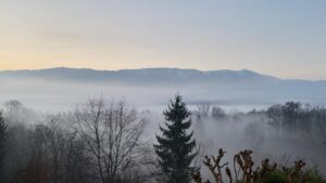 C’è un attimo, prima che il giorno si accenda davvero, in cui tutto sembra sospeso. La nebbia avvolge la valle, ammorbidisce i contorni, spegne i rumori. Gli alberi diventano ombre leggere, le colline sullo sfondo si intravedono appena, come disegnate a matita. Il cielo schiarisce piano, senza strappi. I neri non sono profondi, ma vellutati; non chiudono lo sguardo, lo accompagnano. È una luce che non invade, ma accarezza. Poi arriverà il sole a definire ogni cosa. Ma in questo equilibrio fragile tra buio e chiarore vive una magia silenziosa: quella dei neri soffusi, che trasformano il paesaggio in poesia.