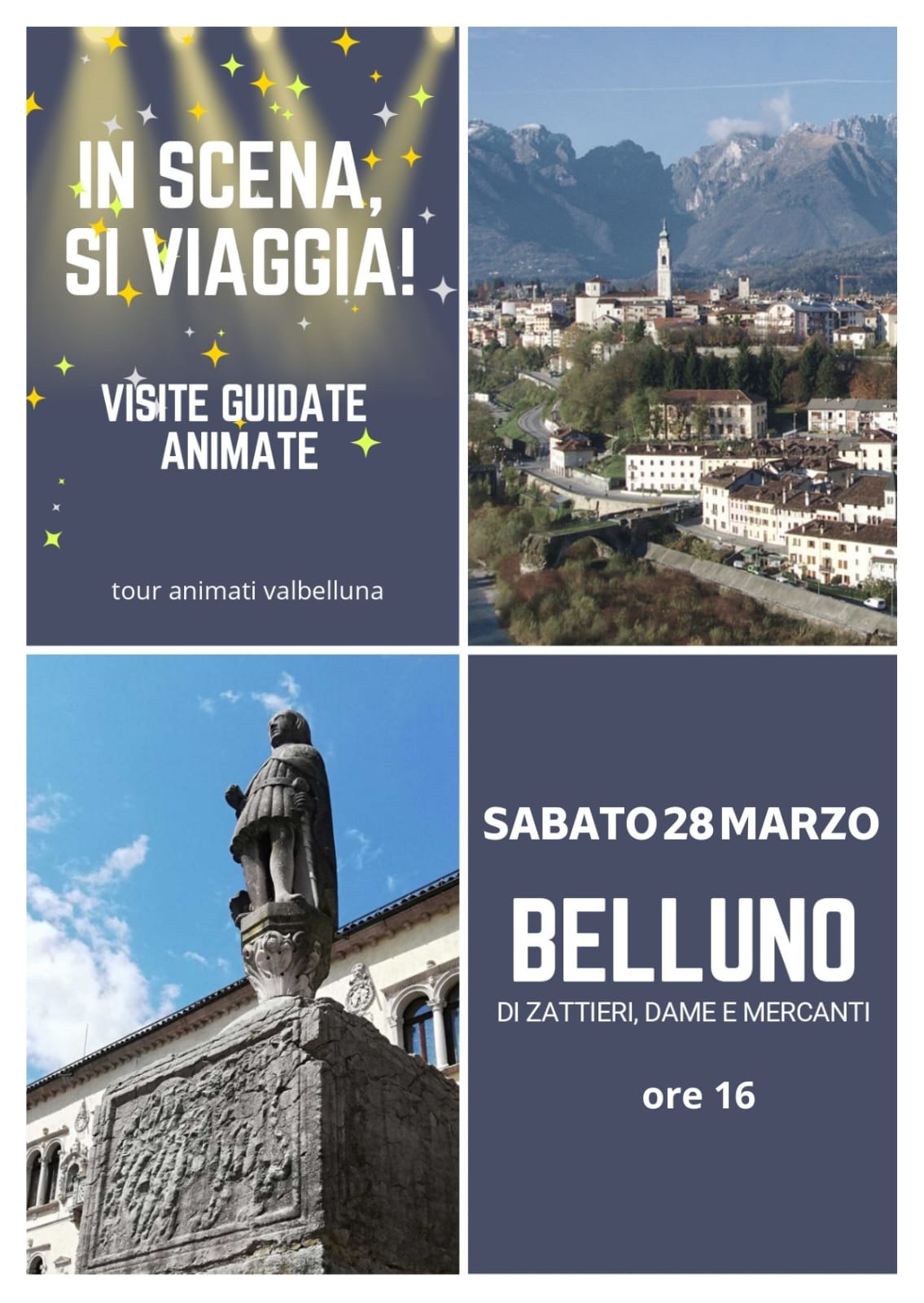 BELLUNO Dopo il successo dello scorso anno, il tour animato “In scena si viaggia – Belluno di zattieri, dame e mercanti” torna a Belluno sabato 28 marzo 2026 alle ore 16:00. L’evento, pensato per famiglie, offre un percorso guidato nel centro storico della città, accompagnati dalla guida turistica Valentina Pilotti e dagli attori Cristina Gianni e Marco De Martin. Il tour permette di scoprire la storia, i personaggi e i paesaggi della Belluno storica, svelando curiosità e retroscena di eventi che hanno segnato il destino della città. La partenza avverrà davanti al Teatro Dino Buzzati in Piazza Vittorio Emanuele 2, con durata di circa 2,5 ore. Il tour si svolgerà solo al raggiungimento di almeno 25 partecipanti adulti, con un massimo di 60. Il costo è di 20 euro per adulti e 14 euro per bambini fino a 11 anni. Prenotazione obbligatoria tramite form online. Abbigliamento comodo e scarpe sportive consigliati.