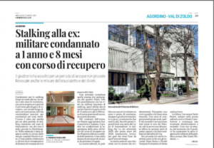 STALKING ALLA EX, CONDANNATO MILITARE: PENA SOSPESA CON PERCORSO DI RECUPERO