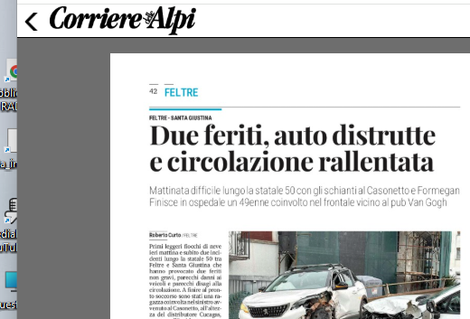 Un terzo intervento si è reso necessario a Cortina d’Ampezzo, dove una donna di 54 anni, residente a Belluno, è rimasta ferita. Data la dinamica, è stato attivato anche l’elicottero Falco. La paziente è stata poi condotta al Pronto Soccorso di Belluno per gli accertamenti del caso. L’ultimo episodio ha riguardato Tai di Cadore, dove un uomo di 83 anni, residente a Pieve di Cadore, è rimasto coinvolto in un ulteriore sinistro. L’ambulanza di Pieve ha provveduto a prestare i primi soccorsi e al successivo trasporto al Pronto Soccorso.