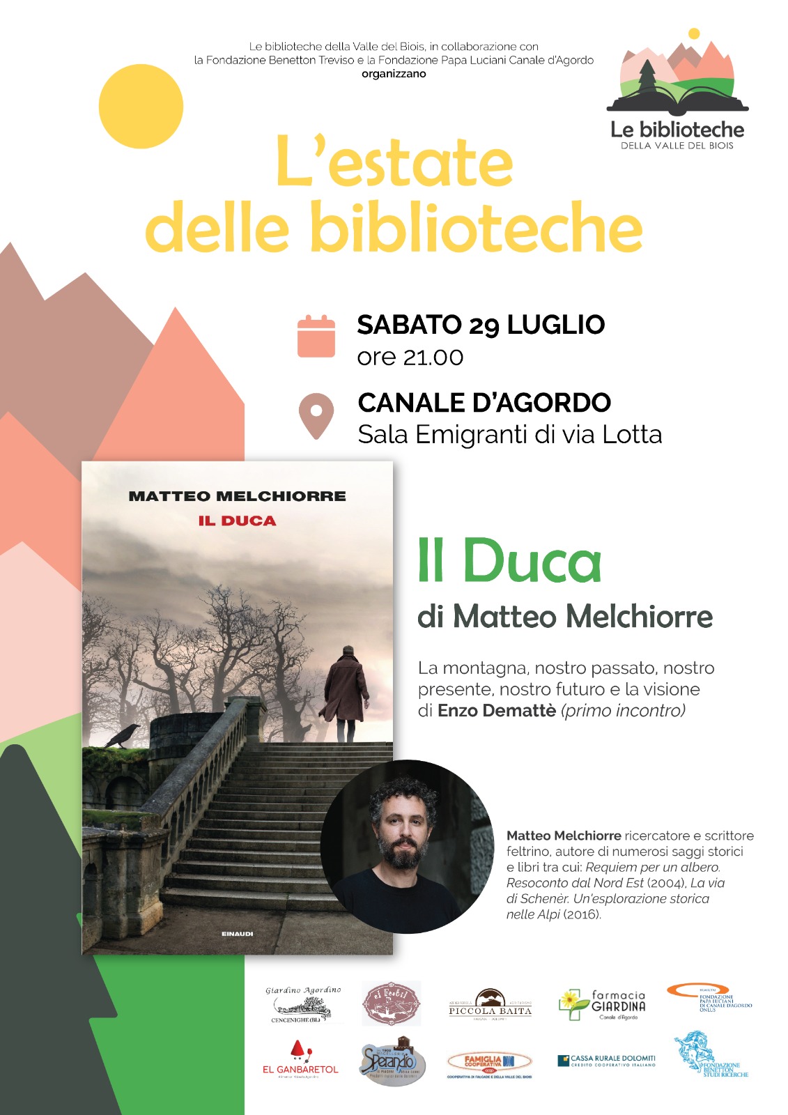 CANALE D’AGORDO Sabato alle 21 in sala emigranti presentazione del libro “Il Duca” di Matteo Melchiorre, ricercatore e scrittore feltrino.