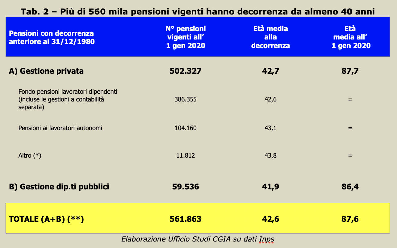 “Il termine baby pensionati è ovviamente informale, non ha alcun fondamento legislativo e abbiamo deciso di racchiudere in questa categoria coloro che hanno lasciato il lavoro prima della fine del 1980. In totale sono quasi 562 mila le persone che non timbrano più il cartellino da almeno 40 anni. Di queste, oltre 386 mila sono costituite in