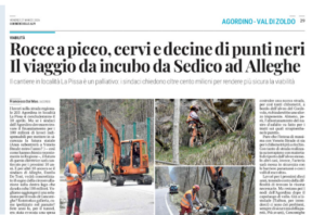 SR 203 AGORDINA: CHIUSURE TEMPORANEE CON ORARI DEFINITI IN LOCALITA’ LA PISSA