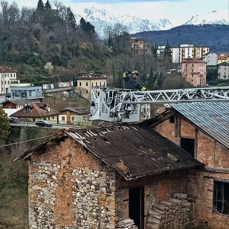VIGILI DEL FUOCO INTERVENGONO A BELLUNO PER DANNI AL TETTO CAUSATI DAL VENTO