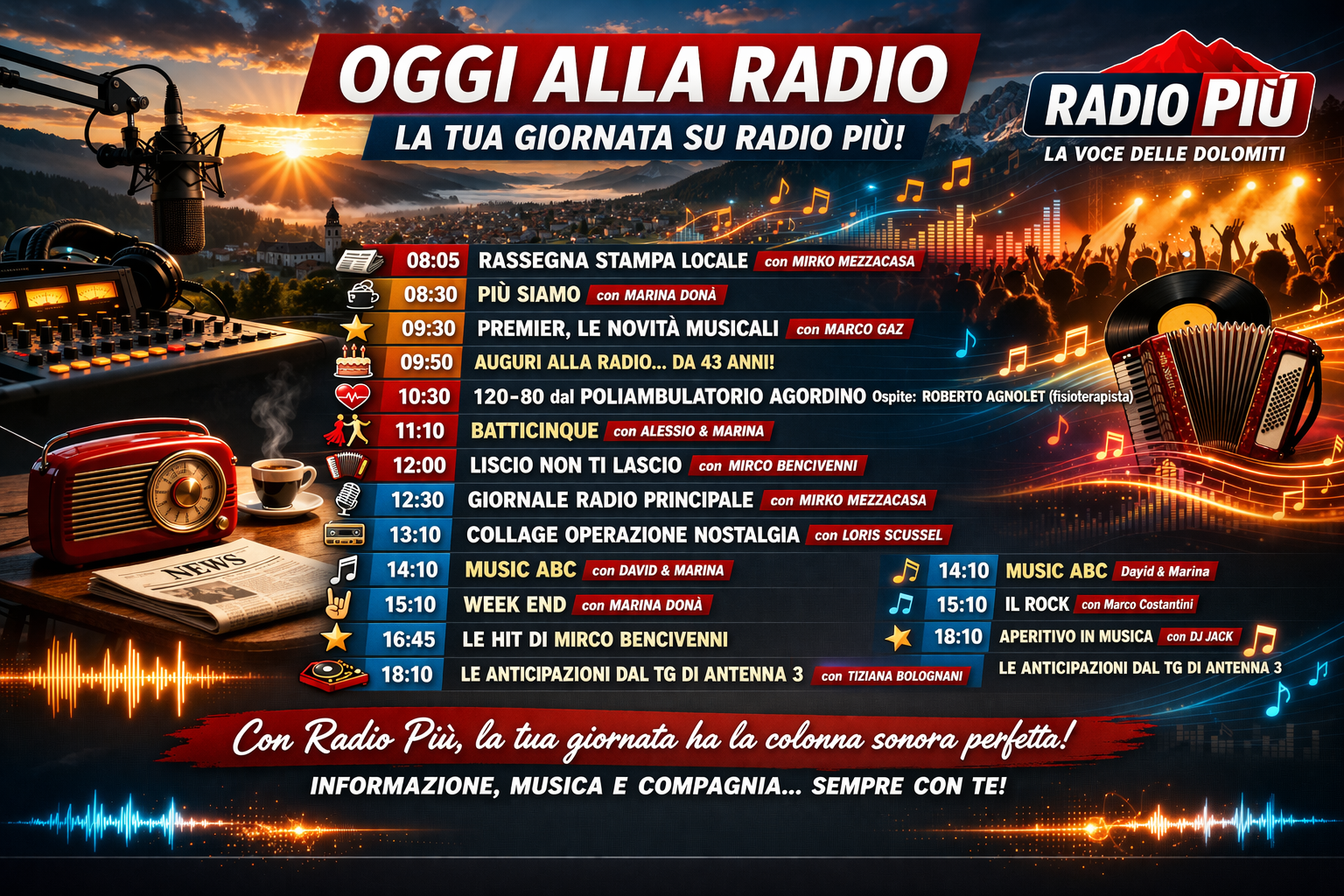 CORTINA COME OLIMPIA, IL PROGRAMMA SULLE TRE RADIO….. RESOCONTO