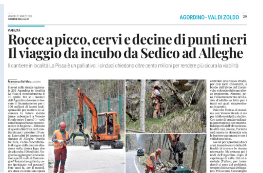 SEDICO Nuove limitazioni alla circolazione lungo la SR 203 “Agordina”, nel tratto compreso tra il km 16+100 e il km 16+500 in località La Pissa, nel Comune di Sedico. L’ordinanza n. 165/2026 prevede interruzioni temporanee del traffico fino al 10 aprile 2026, con esclusione di sabati, domeniche e festivi, per consentire lavori di messa in sicurezza della parete rocciosa. Le chiusure saranno effettuate a fasce orarie ben precise: dalle 08:00 alle 08:40, dalle 08:55 alle 09:35, dalle 09:50 alle 10:30, dalle 10:45 alle 11:15, dalle 11:30 alle 12:30, dalle 14:05 alle 14:35 e dalle 14:55 alle 16:05. Durante le pause tra un’interruzione e l’altra sarà consentito il passaggio dei veicoli.