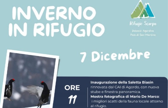VOLTAGO Il Rifugio Scarpa-Gurekian riapre il 7 dicembre inaugurando la stagione invernale con una giornata dedicata a territorio e tradizioni. Alle 11.00 viene presentata la rinnovata Saletta Biasin, ristrutturata dal CAI Agordo e arricchita da stube e finestra panoramica. Contestualmente apre la mostra fotografica di Mario De Marco, che racconta la fauna locale delle montagne agordine. Nel pomeriggio, dalle 14.00, arrivano i Krampus del gruppo giovani di Voltago, portando folklore e divertimento. Il rifugio resterà aperto tutti i giorni fino al 6 aprile, offrendo ristorazione, ospitalità e nuovi eventi in arrivo.