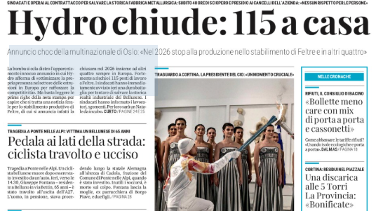 FELTRE Preoccupazione e fermezza da parte del Sindaco di Feltre, Viviana Fusaro, dopo l’annuncio improvviso di Hydro, che improvvisamente nella mattina del 26 novembre ha comunicato di star valutando una ristrutturazione interna con possibili ripercussioni sullo storico stabilimento feltrino, attivo dal 1939. La Sindaco parla di una notizia «inaccettabile e priva di rispetto», arrivata senza alcun confronto preventivo con il Comune. Fusaro ha raggiunto lo stabilimento già nelle prime ore della giornata e ha convocato una riunione urgente dei capigruppo. Annunciata inoltre la richiesta immediata di un tavolo di unità di crisi con Governo, Regione, azienda e sindacati. «La città non rimarrà a guardare: faremo tutto il possibile perché lo stabilimento resti attivo sul territorio», ha dichiarato Fusaro, ricordando come la fabbrica garantisca da oltre ottant’anni lavoro e reddito a centinaia di famiglie. Una chiusura improvvisa, sottolinea, avrebbe un impatto pesantissimo sul tessuto economico e sociale della città. Da questo momento non molleremo di un millimetro e continueremo a chiedere garanzie per i lavoratori».