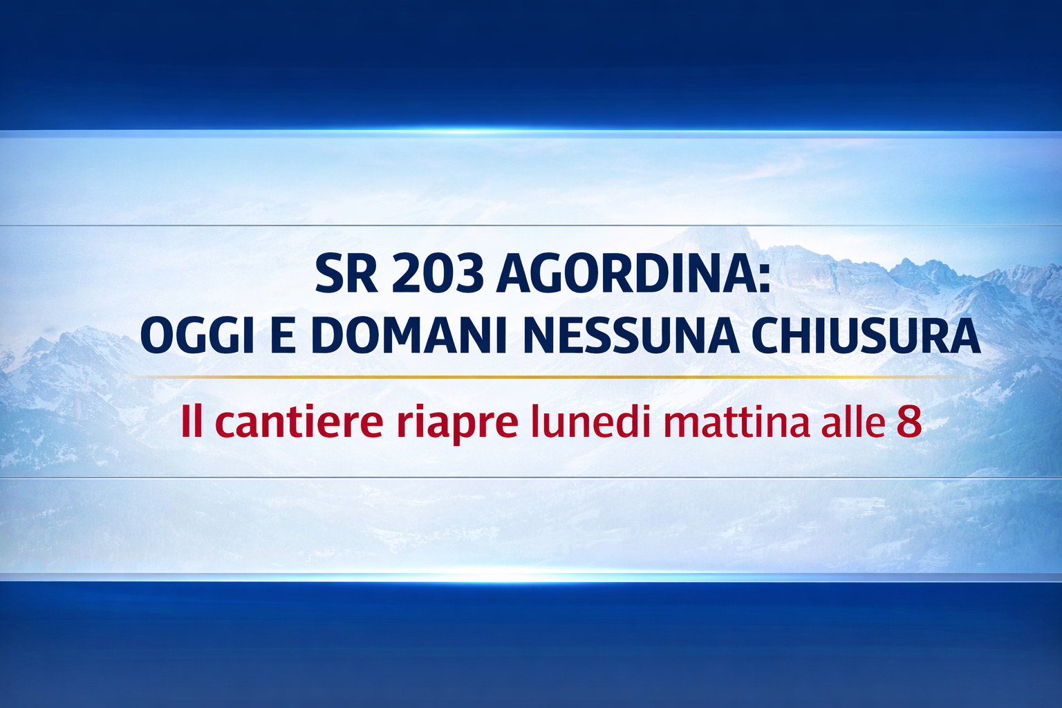 Sta creando confusione tra i cittadini l’avviso di chiusura al traffico comparso in questi giorni, ma è bene chiarire subito: il provvedimento non ha nulla a che vedere con il cantiere della regionale che porta a Belluno e che tra l’altro presenta notevoli ritardi, continui rinvii di fine lavoro, code chilometriche e disagi quotidiani che per molti significa: mancata programmazione, improvvisazione, incertezza sullo sviluppo dei lavori