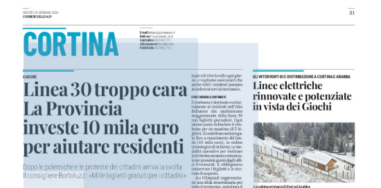 BELLUNO La Provincia di Belluno attiva un aiuto economico per tutelare il diritto alla mobilità dei residenti dell’alto bellunese durante il potenziamento della linea 30 Calalzo–Cortina, in vigore dal 23 gennaio al 17 marzo 2026. In questo periodo, con fino a quattro corse l’ora, la tariffazione chilometrica è sospesa e sostituita da un biglietto giornaliero fisso da 10 euro, che penalizza gli utenti occasionali non abbonati. Per questo è stato istituito un fondo provinciale di 10.000 euro per rimborsare integralmente fino a cinque biglietti a persona ai residenti dei comuni interessati. Il contributo sarà erogato fino a esaurimento risorse, in ordine cronologico di richiesta, previa conservazione dei titoli di viaggio. La misura intende sostenere chi si muove per esigenze essenziali, garantendo equità e attenzione al territorio durante il periodo olimpico.