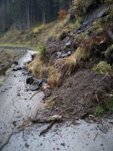 RIVAMONTE Strada riaperta dopo la Chiusura di ieri dalle 12 di ieri alle 17 della provinciale 3 di Valle Imperina, Rivamonte-Agordo. Cede il terreno alla ex scuola di Zenich fino alla strada sottostante. Interessata la frazione di Schena.