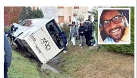 Gravissimo incidente ieri mattina a Piavon di Oderzo: un bus scolastico Atvo si è ribaltato dopo lo scontro frontale con una Hyundai Tucson guidata da Germano De Luca, 85 anni, di Fregona, morto sul colpo. Sul bus viaggiavano una cinquantina di studenti tra i 14 e i 18 anni: quindici sono rimasti feriti in modo non grave e portati negli ospedali di Oderzo e San Donà. Secondo le indagini, De Luca aveva la patente revocata dal giorno prima e potrebbe essere stato colto da un malore. La Procura di Treviso ha aperto un’inchiesta e disposto l’autopsia. I soccorritori: «Solo il fossato ha evitato una strage». (FOTO corriere delle alpi L’AUTISTA ATVO ANGELO LUPOLI)