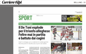 IL DERBY BELLUNESE DI IHL E’ DELL’ALLEGHE