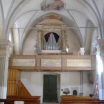 Ed eccoci alle opere d’arte: sulla facciata del campanile il bell’affresco del tedesco Kurt Geibel Hellmek, raffigurante San Biagio benedicente. Interno: sopra l’ingresso principale il raffinato ed elegante parapetto del pontile dell’orchestra e la cassa armonica dell’organo; nella parete sinistra una piccola cappella che costituisce l’antico nucleo ecclesiastico di Alleghe e conserva ù la statua della Madonna di Loreto (figura particolarmente venerata), interamente scolpita in legno di tiglio, dorato e parzialmente policromato, curata nel minimo dettaglio e dinamica, di epoca compresa tra il 1560 e il 1570. Degna di nota anche la statua di San Biagio, in pietra artificiale, conservata dall’antica chiesa e realizzata tra il 1410 e il 1420, ospitata nella nicchia esterna sopra l’ingresso principale. La pala dell’altare maggiore è un bel dipinto di Valentino Rovisi, che illustra San Biagio in gloria tra Santa Maria Maddalena e San Giovanni Napomuceno. Nel soffitto un ciclo di affreschi illustra: la gloria di San Biagio nel presbiterio, il sogno di Giacobbe, il sacrificio di Noè e il giudizio di Salomone nell’aula. Attribuiti al Rovisi, sono probabilmente anche frutto di una collaborazione con l’affreschista Josef Adam Mölk. Della figlia di Rovisi la pala con l’Assunzione della Vergine tra i Santi Antonio Abate e Vincenzo Ferrer, risalente al 1780, che presenta evidenti ispirazioni al Tiepolo e a Valentino. Si ritiene opera di Rovisi anche la pala della “Madonna della Neve” databile al 1784.