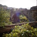 NELLE FOTO (Renato Bona e Wikipedia): immagine datata del Ponte Vecchio con la sua arcata superstite messa a confronto con uno scatto di questi giorni e lo stesso ex ponte visto da altre angolazioni.