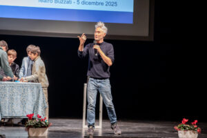 BELLUNO Una platea gremita da oltre seicento persone ha accolto venerdì 5 dicembre, al Teatro “Dino Buzzati” di Belluno, l’attesissimo incontro “Il futuro che ci piace, Orientarsi tra passioni, valori e cooperazione”, promosso da Cortinabanca e C.F.S.-Centro per la Formazione e la Sicurezza di Belluno. Protagonista assoluto della serata il professor Vincenzo Schettini, fisico, docente e noto divulgatore scientifico, capace di conquistare l’attenzione e l’entusiasmo del pubblico con un intervento ricco di riflessioni sui temi dell’educazione, del coinvolgimento dei giovani, del valore delle relazioni umane e del futuro del territorio. Schettini ha più volte dialogato direttamente con i ragazzi presenti, invitandoli sul palco e realizzando anche un piccolo esperimento sul magnetismo che, in modo simbolico, ha rappresentato la relazione di vicinanza, attrazione e reciproca influenza tra i giovani e la propria comunità. L’esperimento è diventato metafora della responsabilità condivisa nel costruire un territorio vivo, dinamico e orientato al futuro. Alla serata erano presenti numerose autorità civili e religiose, rappresentanti delle amministrazioni comunali e provinciale, e il Vescovo di Belluno-Feltre, Mons. Renato Marangoni. All’incontro ha preso parte anche il professor Franco Chemello, insieme ad alcuni ragazzi delle Scuole in rete per un mondo di solidarietà e di pace, che hanno portato sul palco testimonianze e attività, evidenziando la ricchezza del loro impegno formativo e sociale. Durante la cerimonia sono stati premiati complessivamente oltre 300 studenti meritevoli, tra le borse di studio messe a disposizione da Cortinabanca per i ragazzi che si sono distinti nei vari percorsi – dalle scuole medie superiori alla laurea -, e i riconoscimenti assegnati dal C.F.S di Belluno a chi ha terminato il proprio corso di qualificazione. Momento particolarmente emozionante, tra gli altri, la consegna delle due borse di studio dedicate alla memoria di Nevio Meneguz, per breve tempo direttore del C.F.S. Belluno e a lungo figura di riferimento nel mondo del sociale e del terzo settore provinciale, ma non solo. A consegnare i premi ai ragazzi è stata anche la madre di Nevio, la signora Ardea, accolta dal pubblico con un caloroso applauso.