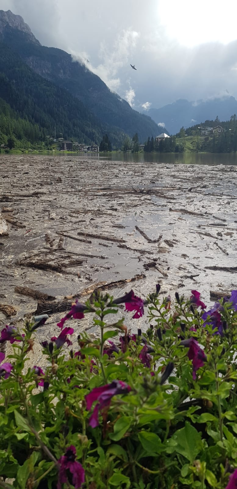 ALLEGHE Lago Alleghe: livello in crescita, al momento appena 60 cm sotto il livello della strada. Stanno salendo le squadre di Protezione Civile dell’Ana Belluno con i sacchi per ogni evenienza.