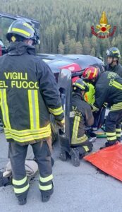 AURONZO i Vigili del fuoco di Belluno sono intervenuti in via Monte Piana, lungo la SR49 a Misurina (Auronzo di Cadore) per un incidente che ha coinvolto due autovetture.