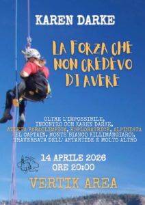 SAN TOMASO Un appuntamento dedicato al coraggio, alla resilienza e alla scoperta dei propri limiti è in programma il 14 aprile 2026 alle ore 20.00 al Vertik Area. Protagonista della serata sarà Karen Darke, atleta paralimpica, esploratrice e alpinista di fama internazionale. L’incontro, intitolato “La forza che non credevo di avere”, offrirà al pubblico un racconto intenso fatto di sfide, imprese e conquiste personali. Dalle ascese su montagne iconiche come il Monte Bianco e il Kilimangiaro fino alla traversata dell’Antartide, Darke condividerà esperienze capaci di ispirare e far riflettere. L’evento rappresenta un’occasione unica per ascoltare una testimonianza autentica di determinazione e rinascita, aperta a tutti coloro che vogliono guardare oltre l’impossibile.