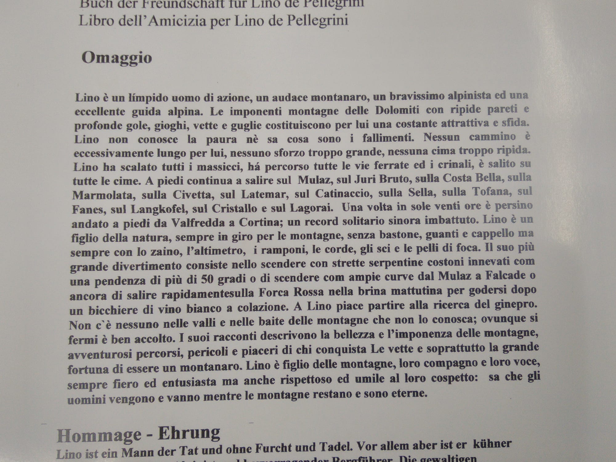 Da Radio Più un abbraccio sincero e affettuoso alla famiglia De Pellegrini, ai figli Axel, Harald (gestore della Baita Flora Alpina e Erwin che dal padre ha appreso l’arte dell’ospitalità nella ristorazione, nella speranza che il calore della comunità possa accompagnare questo momento di grande dolore. Lino lascia un vuoto profondo, ma anche un’eredità di umanità che continuerà a camminare tra le montagne che tanto amava.