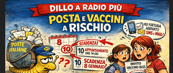Una nostra ascoltatrice di Canale d’Agordo ci segnala l’ennesima, curiosa… o forse preoccupante situazione. Dopo il comunicato del 3 gennaio, in cui Poste Italiane garantiva che “la consegna della posta in Agordino è regolare”, oggi 8 GENNAIO 2026 le è arrivata una busta ufficiale dell’Ulss per la vaccinazione di sua figlia prevista per il 15 dicembre dello scorso anno. Se non fosse stato per gli SMS e le e-mail di promemoria inviati dall’Ulss – la ragazza avrebbe rischiato di saltare il vaccino. Perché quando la busta arriva dopo la data limite… l’invito serve a poco. La domanda allora sorge spontanea: posta regolare o cittadini costretti ad arrangiarsi? Noi continuiamo a raccogliere le vostre segnalazioni.