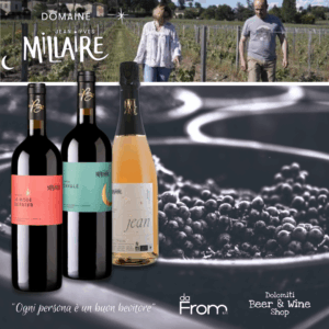 C’era una volta un nonno che negli anni ’50 acquistò pochi ettari di vigna tra le colline di Fronsac. Una terra ricca di fossili, di calcare e di memoria, dove le radici della vite affondano profonde. Passano le generazioni, e arriva il momento di scegliere: continuare con la strada più semplice o tornare all’essenza. La famiglia Millaire non ha avuto dubbi: biologico prima, biodinamica poi. Una viticoltura che non sfrutta, ma accompagna; che osserva i cicli della luna, che nutre il terreno con preparati naturali, che considera ogni parcella come un giardino unico. Tra i filari di Merlot, Cabernet Franc e Malbec, nascono vini che sanno parlare. Alcuni sono immediati, croccanti, perfetti per la convivialità. Altri raccontano con eleganza la profondità dei suoli. Poi ci sono le rarità: bollicine sorprendenti, orange wine, vitigni inusuali come Chenin o Petit Manseng, piccoli tesori che emozionano chi cerca novità. Ogni bottiglia è una storia di famiglia, di coraggio e di amore per la terra.