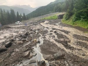 LIVINALLONGO Erano le 15 quando in località Ponte Vauz lungo la 48 delle Dolomiti si è scatenato il diluvio. Diverse frane e smottamente 6 motociclisti, inpaltanati, lievi danni ai mezzi, erano in un sottopassaggio mentre si riparavano dalla pioggia, sono stati aiutati ad uscire da una trappola, poco dopo il sottopasaggio si è riempito di fango. Danneggiata la stazione di Ponte Vauz degli impianti di risalita. La viabilità sarà ripristinata solo domani. Sul posto Carabinieri, Veneto Strade, Vigili del Fuoco. Passo Valparola riaperto dopo ore di lavoro, Fedaia. Gardena e Selle aperti