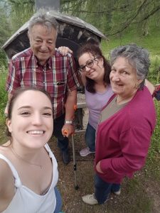 Noi nipoti siamo un po’ più sfortunati, perché siamo quelli che hanno meno tempo a disposizione da passare con i nonni, ma forse è proprio questo che rende il nostro rapporto con loro così speciale… Quando ero più piccola, ho avuto modo di passare praticamente tutte le mie estati qui. E passavo pomeriggi e serate interi a parlare con la nonna di qualsiasi cosa, le facevo tutte le domande che una ragazzina curiosa del mondo poteva avere. E avendomi portata qui in questa chiesa con lei fin da piccola, finivamo per parlare spesso anche di Dio che, per quanto lo sentiva vicino lei, allora mi sembrava quasi una specie di amico di famiglia, più che una divinità. Quando le chiedevo che cosa c’era – se c’era – qualcosa dopo questa vita, lei invece che incupirsi o cambiare argomento, mi sorrideva tranquilla e mi rispondeva sempre “certo che c’è, c’è un’altra vita bellissima, piena di luce e non vedo l’ora di poter vedere che viso ha Dio”. E poi aggiungeva “ti immagini che bello, poter rivedere tutti i tuoi cari?”. E in queste frasi secondo me c’è tutta l’essenza della nonna: la sua fede incrollabile e l’amore per la sua grande famiglia, da quella di origine di Cordenons fino a quella che poi si è creata scegliendo di venire qui a Falcade, tra le sue amate montagne. Ogni tanto non la vedevo più in cucina e iniziavo a cercarla in giro per casa, per poi trovarla in terrazzo persa a guardare un tramonto estivo. Allora mi mettevo di fianco a lei a guardarlo, poi per scherzo le dicevo “comunque le montagne sono sempre le stesse eh”. E lei sorridendo mi rispondeva “ti sbagli, se le guardi bene ogni sera ci trovi qualcosa di diverso, e comunque mi piacciono come il giorno in cui sono arrivata qui. Anzi, forse anche di più”. E poi da lì iniziava a raccontarmi di quanto fosse stato difficile lasciare la sua famiglia e la sua Cordenons, ma di quanto la sua scelta di venire a vivere a Falcade per amore fosse stata quella giusta. Anche se ogni tanto ci teneva a provocare il nonno dicendo “ah io sono venuta per queste montagne, mica per te!”. Comunque a me questa cosa che, quando parlavamo di quello che ci sarebbe stato dopo questa vita, lei la prendesse così bene, un po’ mi scocciava. E mi arrabbiavo, dicendole frasi del tipo “non ci vuoi abbastanza bene”, “vuoi più bene a Dio che a noi”, al che lei mi faceva di nuovo quel sorriso dolce, rassicurandomi. Allora prima è nato Joshua, quindi per un po’ mi ha risposto “tranquilla che devo prima veder sistemato Joshua”, poi è arrivato Pietro e quindi “tranquilla che devo veder crescere Pietro”, e alla fine Federico, el so picinin, che ovviamente non poteva darle meno gioia degli altri, e quindi ci ha regalato ancora del tempo con lei. Forse ultimamente avrà pensato che, essendo diventata addirittura bisnonna del piccolo Enea, potesse essere felice così e andarsene serena. Tutto ciò per dire che è inevitabile essere tristi in momenti come questo. Tutti noi lo siamo perché la nonna era una persona buona che aveva sempre una parola gentile per tutti. Ma con questo aneddoto vorrei dire a tutti noi che dovremmo affrontare il viaggio della nonna davvero serenamente, perché io in 28 anni non ho mai visto una sola volta il suo viso triste al pensiero di andarsene. A noi nipoti ha insegnato l’amore per la famiglia, per la natura e le piccole cose. Come quando le dicevo che avrei voluto gli occhi verdi come i suoi, e lei mi rispondeva sempre “ma tu ce li hai marroni come i cerbiatti nei boschi, e i cerbiatti sono bellissimi”. Non ci hai mai fatto mancare un tè caldo nei pomeriggi d’inverno, una fiaba per addormentarci alla sera quando con la Sharon e la Nicole chiedevamo di poterci infilare tutte e tre insieme nel lettone. Non mancava mai un film o un cartone animato insieme anche se magari era la trecentesima volta che la costringevi a rivederlo perché era il tuo preferito. Ci ha insegnato le canzoni dello Zecchino d’Oro, anche se alla fine si inventava sempre le parole, e ci ha insegnato a fare i cruciverba, sempre lamentandosi perché mettevano troppi termini inglesi che lei non capiva. Ci siamo improvvisati investigatori guardando ogni puntata della Signora in Giallo, e mentre ci cucinava un piatto di pasta al pomodoro si vantava di aver scoperto il colpevole anche prima di lei. Ogni tanto provava a insegnarci anche la sua bellissima lingua – e mi raccomando a chiamarla “fòlpo” e non “furlan” – che non è la stessa cosa. Con questo devo dire che ha avuto risultati un po’ più scarsi, ma ci ricorderemo sempre quel modo di parlare misto tra i suoi due dialetti che aveva solo lei. Alla nonna piacevano tanto le storie, di qualsiasi genere: le storie a fumetti degli indiani d’America, le fiabe, romanzi gialli, storie d’amore e di fantasia. Ma penso che, alla fine, la storia più bella sia proprio quella che ha scritto insieme alla sua famiglia. Grazie di cuore.