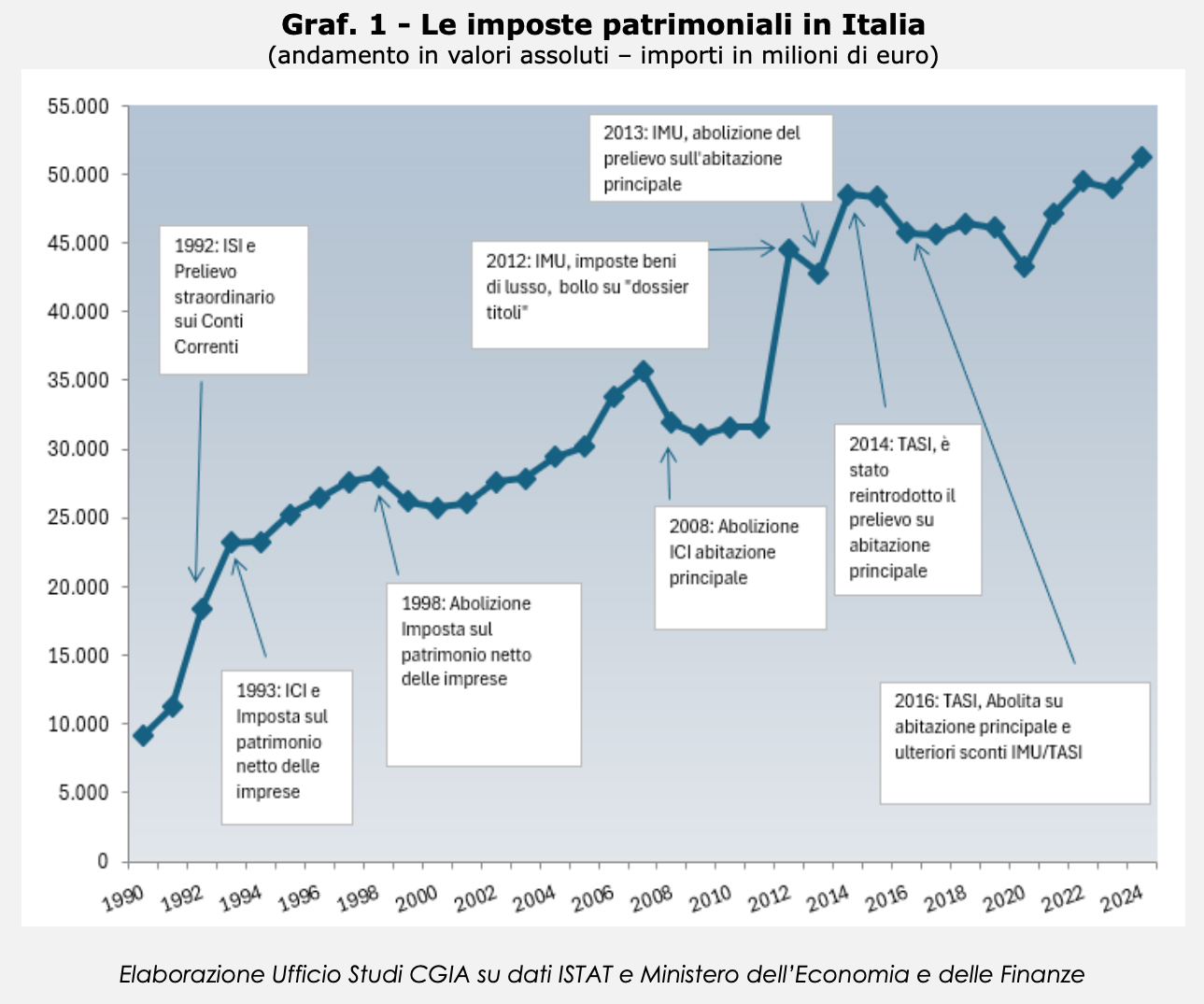 degli sprechi, degli sperperi e delle inefficienze. L’Ufficio studi della CGIA ricorda che in Italia le imposte che gravano sulla ricchezza esistono già. Nel 2024, ad esempio, hanno garantito all’erario 51,2 miliardi di euro e negli ultimi 20 anni, periodo in cui nel nostro Paese hanno governato a più riprese tutti gli schieramenti politici e la quasi totalità dei partiti, il gettito è addirittura cresciuto del 74 per cento. Si stima che dalle patrimoniali applicate ai veneti lo Stato incassi 5 miliardi di euro circa.