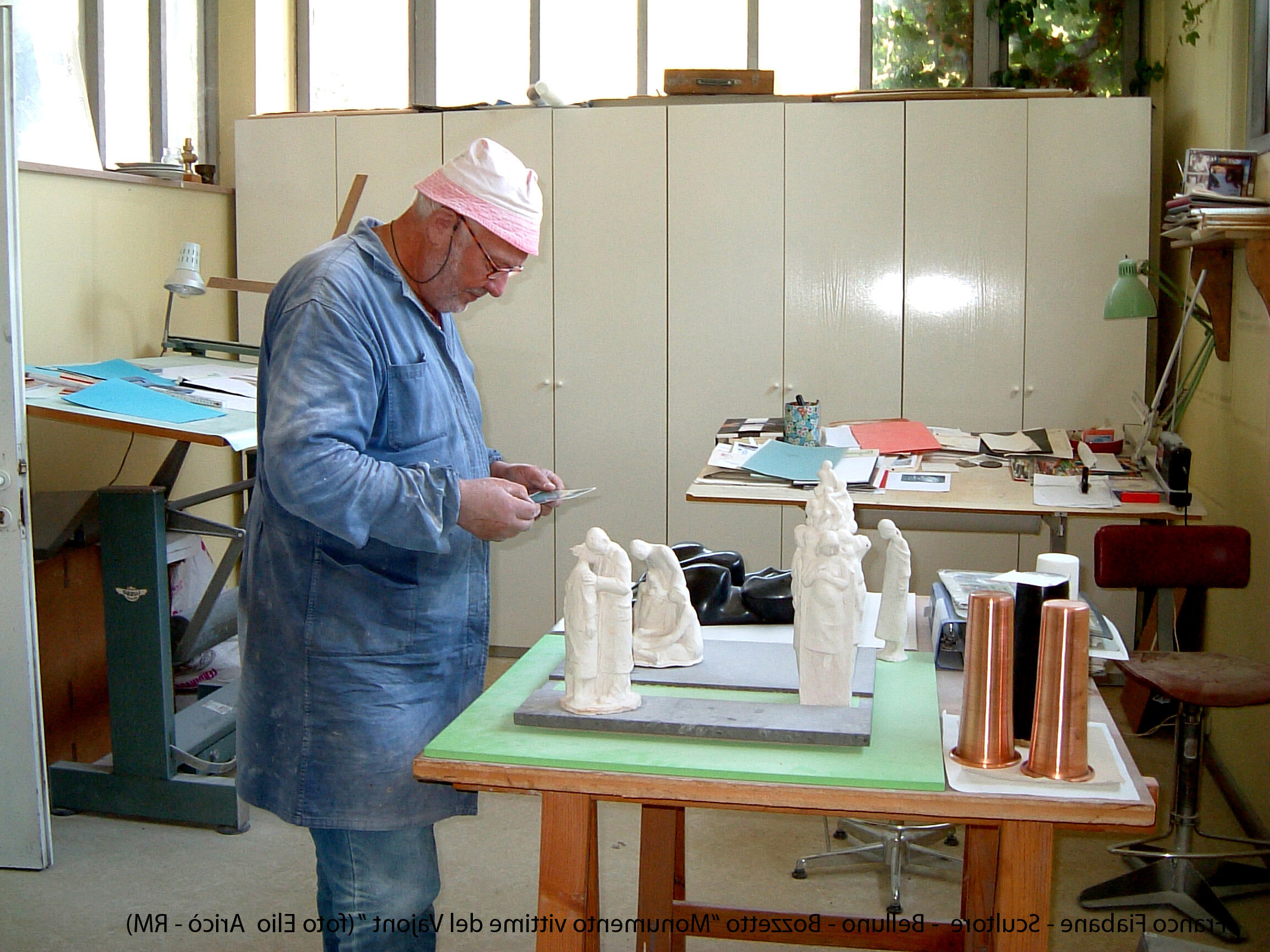 Cara Radio Più… allego il primo set di foto dell’agosto 2004 della lavorazione del Monumento alle vittime del Vajont. Comincia così il messaggio di Elio Aricò, che con affetto e riconoscenza ricorda la figura dello scultore Franco Fiabane, artista bellunese scomparso ma ancora vivo nel ricordo di chi lo ha conosciuto e amato. Elio racconta di aver incontrato Franco per la prima volta nel 2002, durante una visita al Museo Augusto Murer di Falcade. Da quell’incontro nacque un’amicizia sincera, nutrita da una profonda stima reciproca e da un comune amore per l’arte. «Si comportava con me come un fratello maggiore — scrive Elio — pieno di attenzioni e gentilezze». Durante le sue vacanze estive a Belluno, Franco gli preparava veri e propri itinerari turistico-artistici, per fargli conoscere le bellezze del territorio e le sue opere disseminate tra chiese, piazze e collezioni private. Un gesto che dice molto dell’uomo oltre che dell’artista: generoso, curioso, sempre desideroso di condividere la bellezza. Tra il 2002 e il 2015, Elio ha documentato fotograficamente il lavoro di Fiabane, raccogliendo un materiale prezioso che non solo restituisce il percorso artistico dello scultore, ma anche un ritratto umano di grande intensità. Le immagini del Monumento alle vittime del Vajont, realizzate nell’agosto 2004, sono solo una parte di questo racconto visivo: testimonianze di un talento capace di unire tecnica e sentimento, materia e memoria. «Franco Fiabane era uno scultore completo — scrive ancora Elio — lavorava con maestria il marmo, il legno, le pietre dure. Personalmente lo reputo un grande artista che si colloca a pieno titolo nella tradizione del Novecento italiano, accanto a nomi come Emilio Greco, Marino Marini e Marcello Mascherini». Un ricordo colmo di gratitudine e ammirazione, quello di Elio, che attraverso le sue fotografie e le sue parole restituisce l’immagine viva di un uomo che ha saputo lasciare il segno non solo nella pietra, ma anche nei cuori.