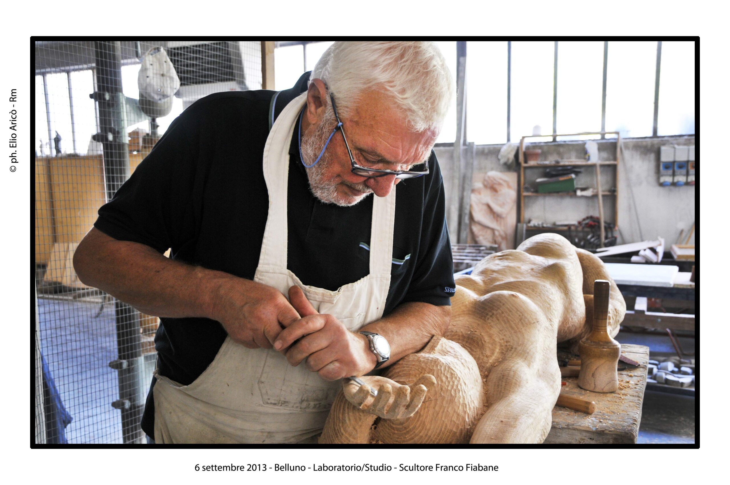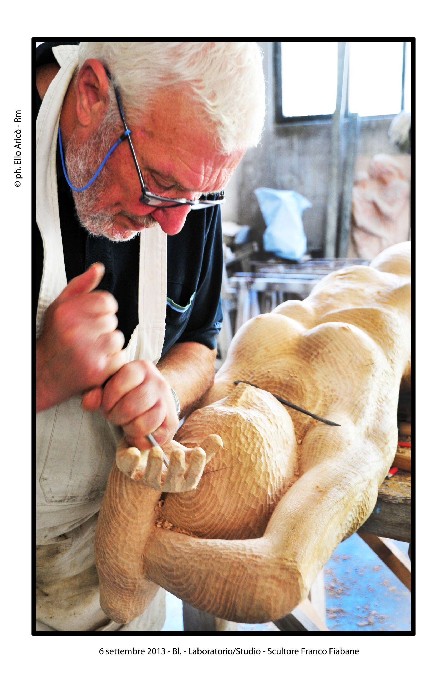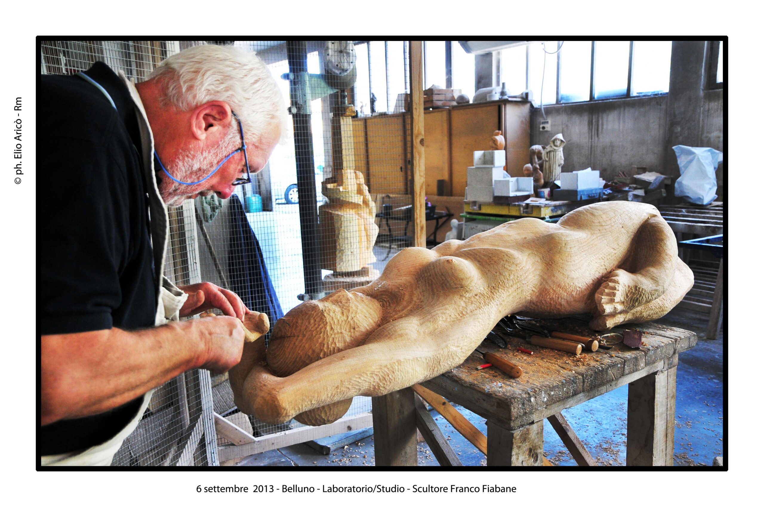 “Questo reportage fotografico non è solo una testimonianza di un artista al lavoro, ma un documento prezioso di un modo di fare arte che nasce dal silenzio, dalla manualità e dal tempo lungo. Nel laboratorio di Franco Fiabane la scultura non è mai un prodotto finito in serie, ma un incontro unico tra l’uomo e il legno, tra memoria e presente, tra materia e forma”.