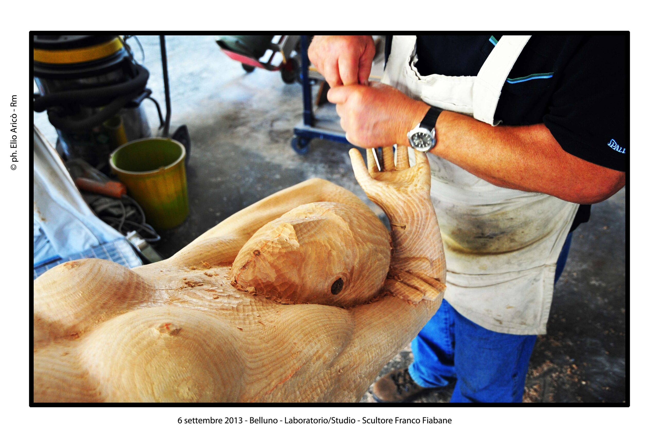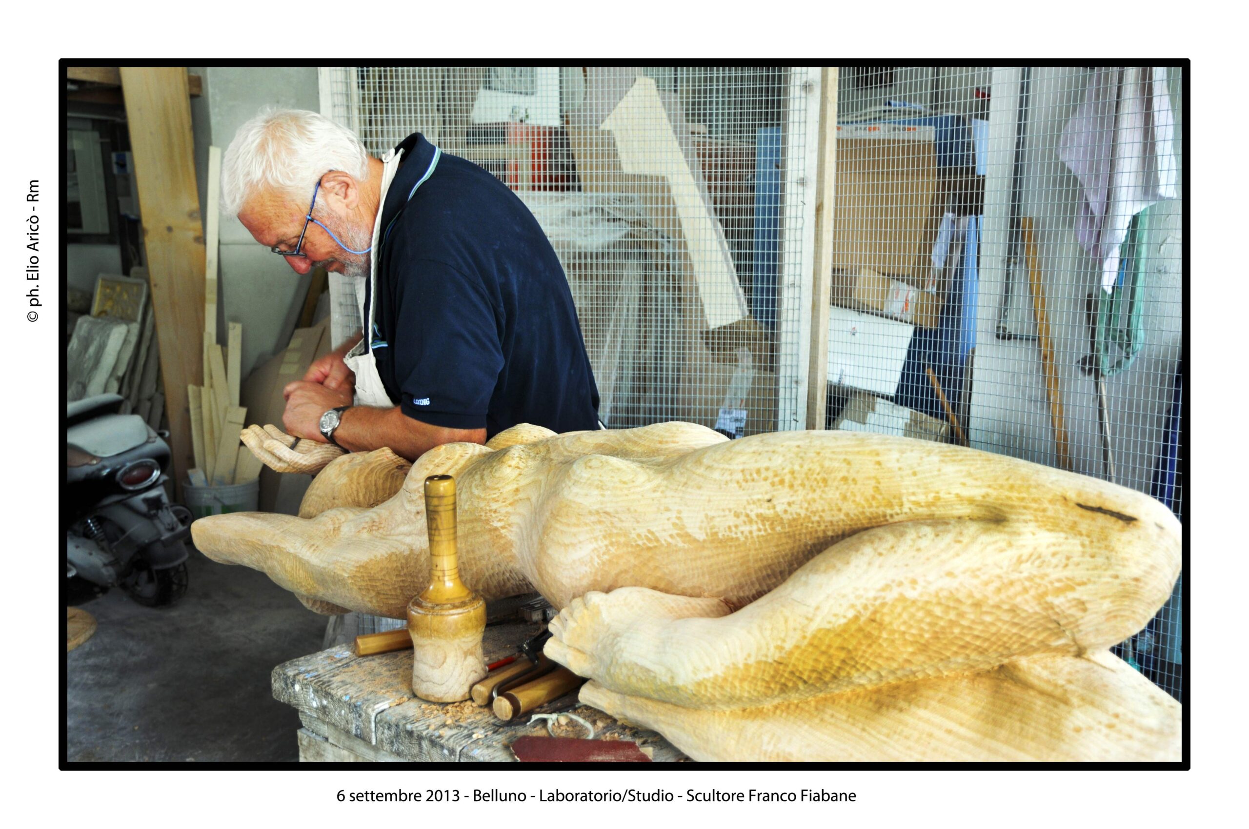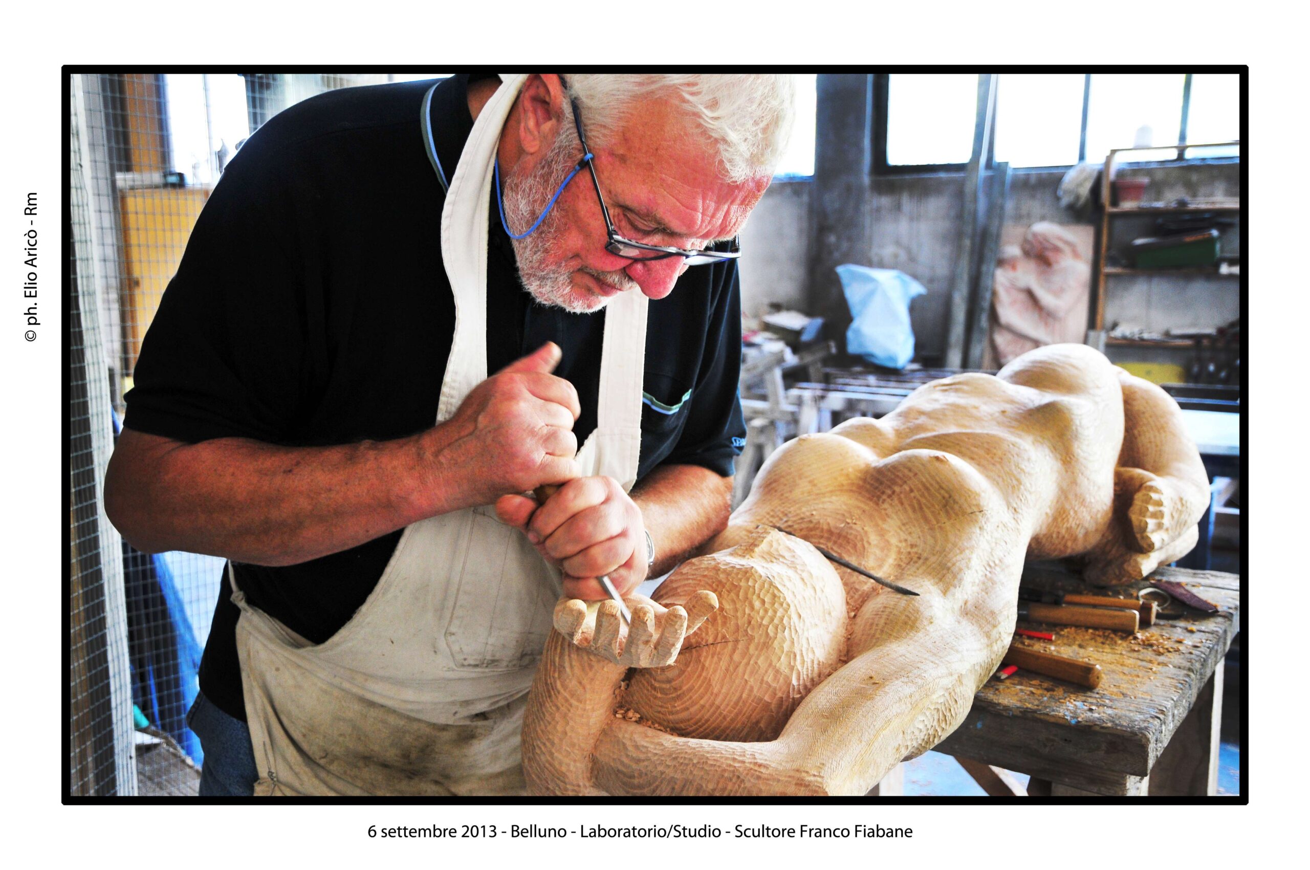 “Questo reportage fotografico non è solo una testimonianza di un artista al lavoro, ma un documento prezioso di un modo di fare arte che nasce dal silenzio, dalla manualità e dal tempo lungo. Nel laboratorio di Franco Fiabane la scultura non è mai un prodotto finito in serie, ma un incontro unico tra l’uomo e il legno, tra memoria e presente, tra materia e forma”.