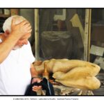 Le immagini di Elio Aricò raccontano non solo l’opera compiuta, ma anche il processo creativo: Fiabane colto nel gesto lento e concentrato dell’incisione, mentre definisce i volumi, leviga, approfondisce le ombre. È uno sguardo intimo dentro il laboratorio dell’artista, dove la scultura prende forma attraverso il rapporto fisico con il legno.